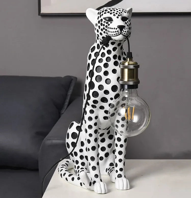 A Luminária Decorativa Guepardo une arte, personalidade e iluminação em uma peça que se destaca instantaneamente em qualquer ambiente. Com presença escultórica, o guepardo em posição sentada sustenta a lâmpada em um gesto lúdico e sofisticado, criando um ponto focal que combina charme, elegância e uma identidade visual única. Seu acabamento detalhado em preto e branco realça o contraste gráfico, conferindo à luminária uma estética moderna que dialoga facilmente com ambientes contemporâneos, criativos e descontraídos.