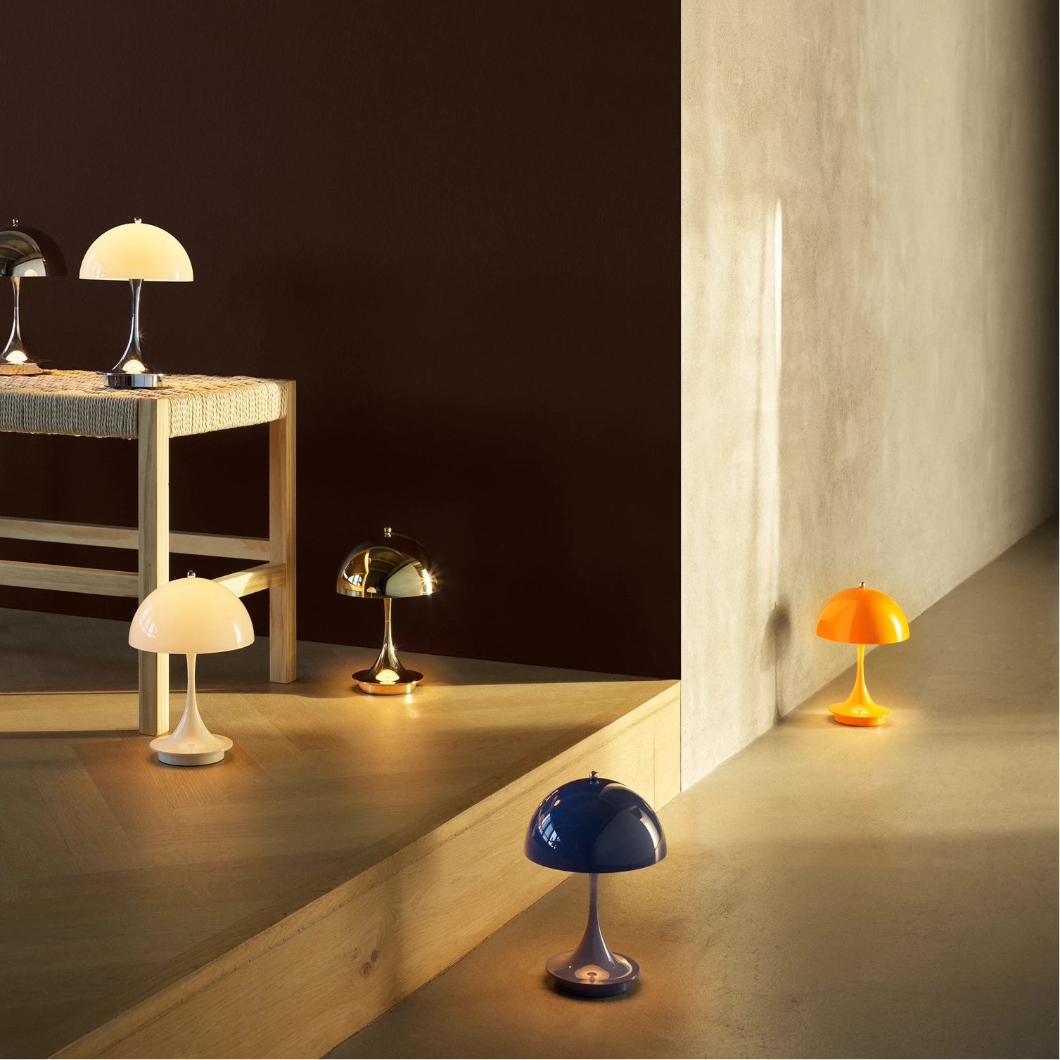 O sistema touch integrado à base permite acionar e ajustar a intensidade da luz com um simples toque, oferecendo controle intuitivo e conforto no uso diário. Ideal para mesas laterais, criados-mudos, aparadores e espaços de leitura, a Panthella Touch equilibra design atemporal e tecnologia discreta, alinhada à curadoria da Popbox Home Design.