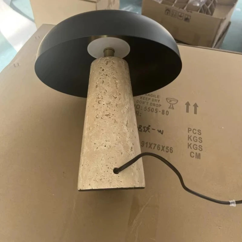 A base em travertino natural oferece peso visual e sensação orgânica, enquanto a cúpula metálica garante equilíbrio, durabilidade e estética minimalista. A iluminação LED integrada assegura eficiência energética, conforto visual e longa vida útil — perfeita para quem busca uma peça de destaque que também entrega desempenho.