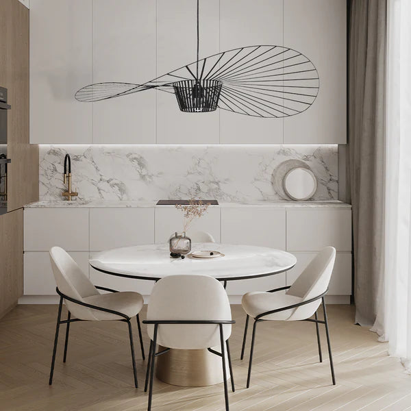 A Luminária Pendente Vertigo é um ícone do design contemporâneo, reconhecida mundialmente por sua forma escultural e pela sensação de leveza que imprime ao ambiente. Seu desenho amplo, composto por linhas finas e bem distribuídas, cria um efeito visual impactante sem comprometer a fluidez do espaço.