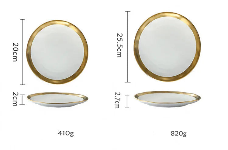 Forma orgânica com borda dourada para uma mesa posta sofisticada, moderna e com assinatura autoral.